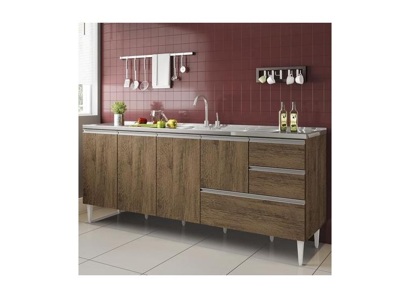 Balcão para pia de 1,80 mt Aracaju com gavetão Castanho - ByMadero Mob