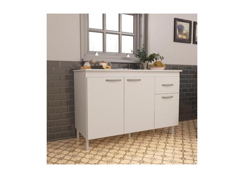 Balcão Para Pia De 120 Cm Com Tampo Suiça Fidelitá Com 3 Portas 1 Gave