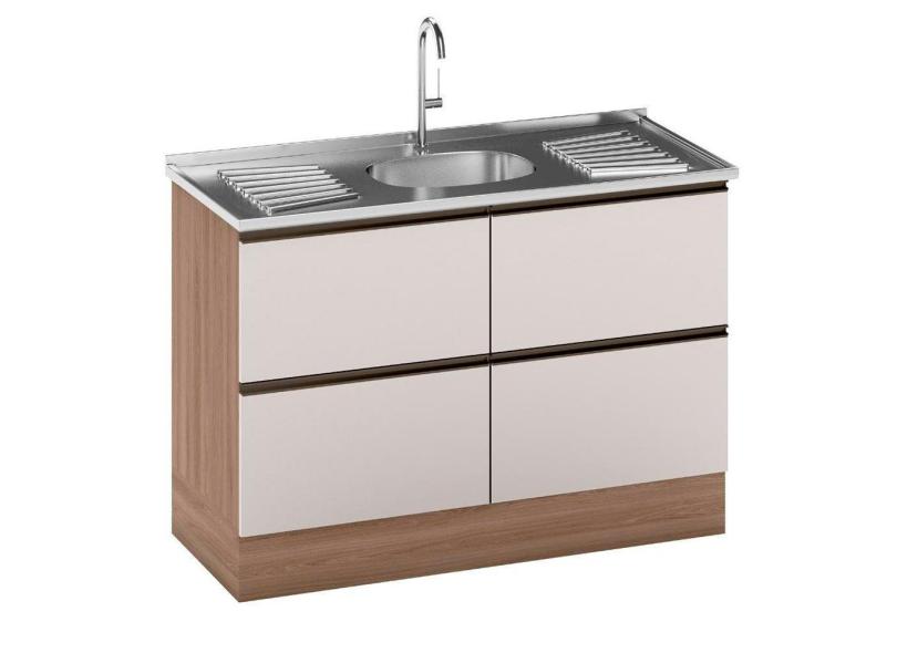 Balcão Para Pia E Cuba 120 Cm 2 Portas 3 Gavetas Etna Poliman Móveis Carvalho Oak E Off White