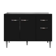 Balcão Para Pia Gabriela 120 Cm 3 Portas Preto Ajl
