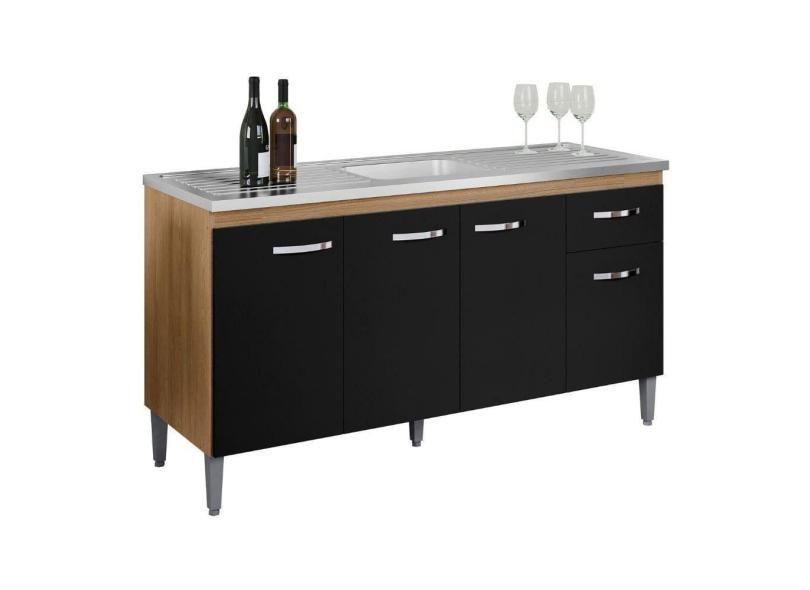 Balcão Para Pia Gabriela 150 Cm 4 Portas Amendoa Preto Ajl