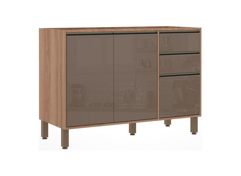 Balcão Para Pia Sem Tampo 120 Cm De Abrir 3 Gavetas Mel Vanill e Gra