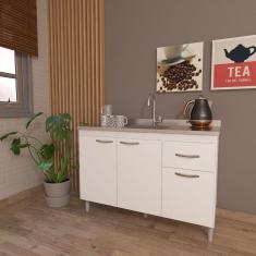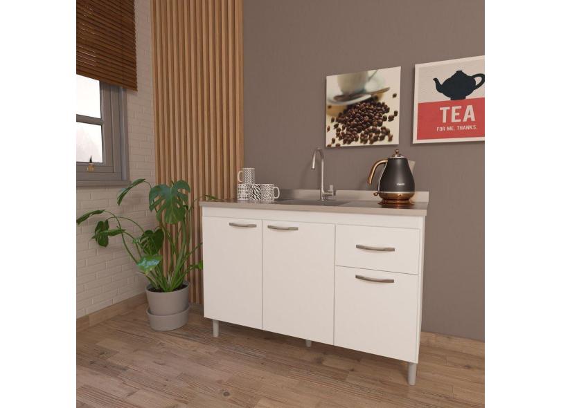 Balcão para Pia sem Tampo 120cm 3 Portas 1 Gaveta Moscou Indekes Branco