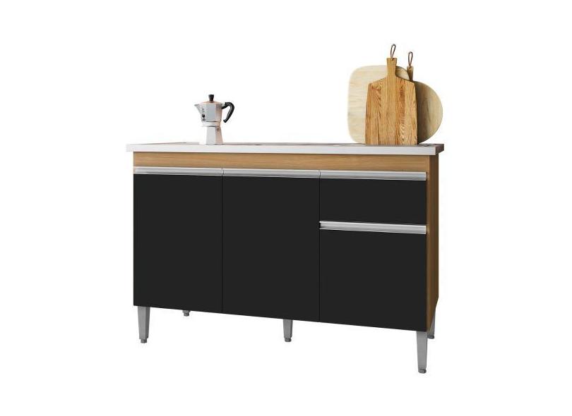 Balcão Para Pia Tatiane 120 cm Amendoa Preto AJL