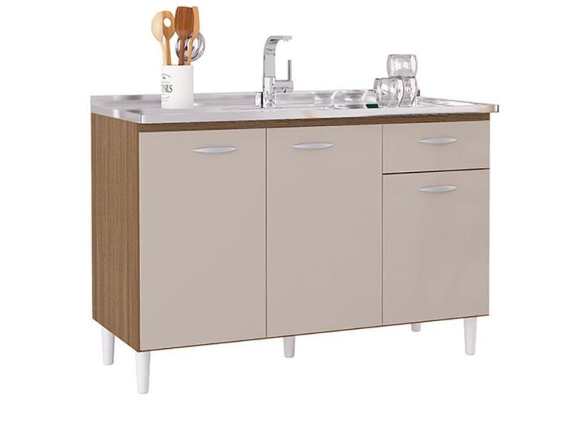 Balcao Pia 120cm 3 Portas 434 Castanha Off White poqq