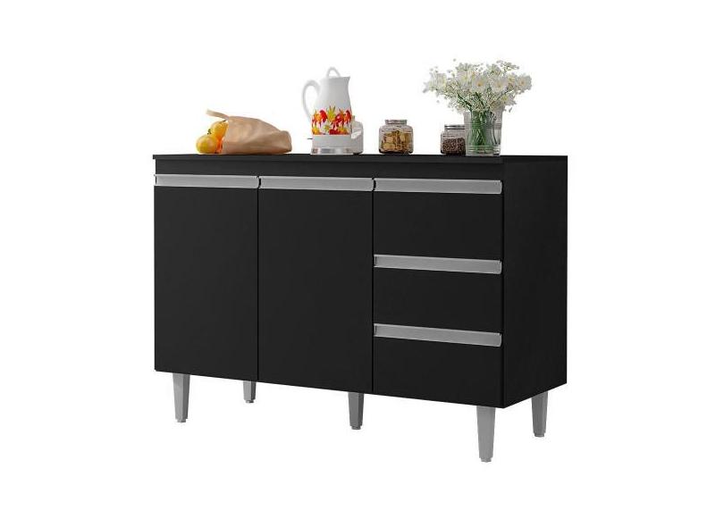 Balcão Pia Andréia 120cm com Tampo MDP - AJL Móveis, Preto
