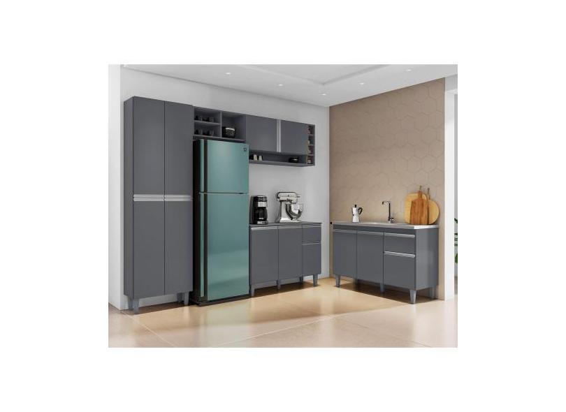 Balcão Roma 3 Portas + Cozinha Ravena Vol.2 C/ Nichos Cinza - Ajl