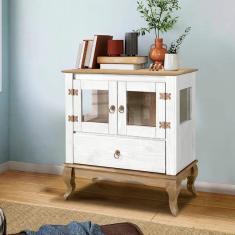 Balcão Rústico Madeira Maciça 2 Portas Vidro Lateral Branco Garapa D12