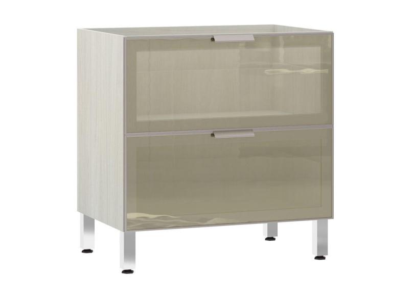 Balcão sem Tampo 80cm 1 Porta Basculante 1 Gavetão com Vidro Reflecta Bronze Luci Luciane Móveis
