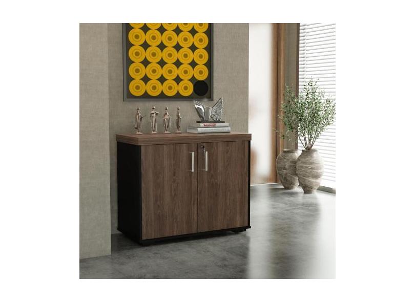Balcao Tamburato Executivo Com 2 Portas Artany Cor Charuto Com Preto