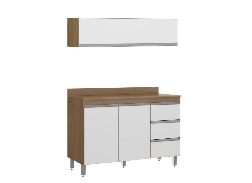 Balcão Tampo para Cozinha com Armário Aéreo Basculante 120cm Branco
