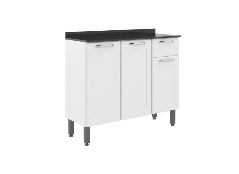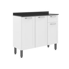 Bancada Armário Multiuso Para Cozinha 3 Portas 1 Gaveta Com Tampo Dona Maria Branco e Preto