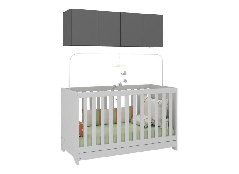 Berço 3 Em 1 Com Colchão E Armário Aéreo 4 Portas Multimóveis Mp4158 Branco/grafite Branco/grafite