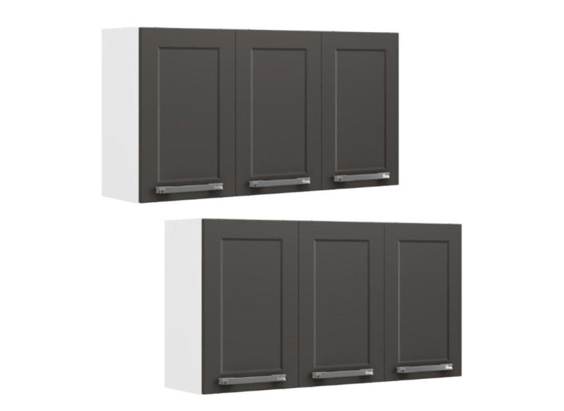 Conjunto 2 Armários de Cozinha Aéreos Itatiaia Aço 3 Portas Florença Grafite/Branco