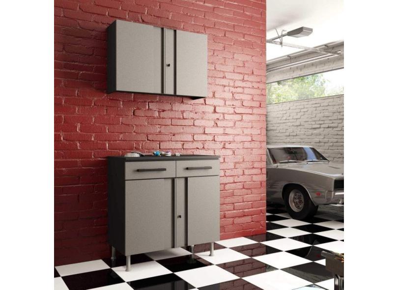 Conjunto Armário Aéreo 2 Portas com Balcão 2 Portas 2 Gavetas Multibox Telasul Cinza