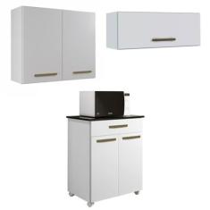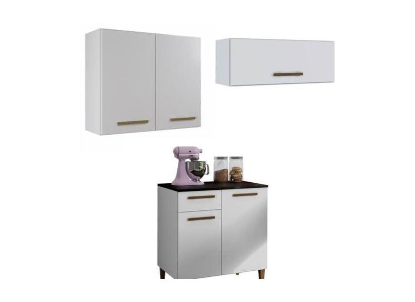 O menor preço encontrado no Brasil para Conjunto Balcão 2 portas 1 gaveta e 2 Armários Aéreo Branco atualmente é R$ 811,18.