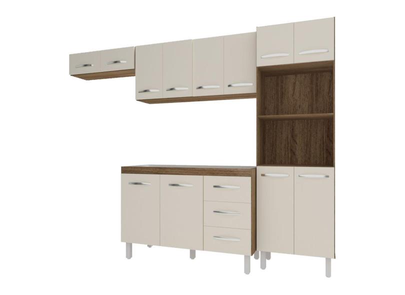Cozinha 4 Peças Balcão Bruna Armário Suspenso Aéreo 118 cm Aéreo de Geladeira Paneleiro Torre Quente Savana Off White