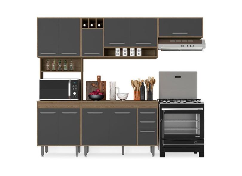 Cozinha 4 Peças Barcelona com Balcão de Cozinha Carvalho Grafite - Poliman