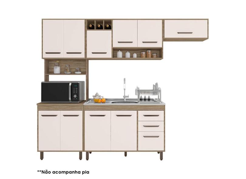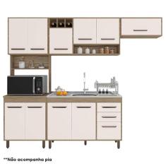 O menor preço encontrado no Brasil para Cozinha 4 Peças Barcelona com Balcão de Pia Carvalho OAK Off White - Poliman atualmente é R$ 877,50.
