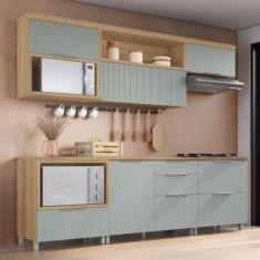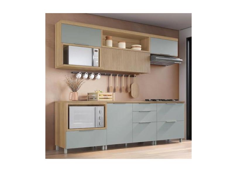 O menor preço encontrado no Brasil para Cozinha 6 Peças 5 Portas 5 Gavetas com Armário Aéreo 100% Mdf Marquesa Nature/verde atualmente é R$ 3.411,74.
