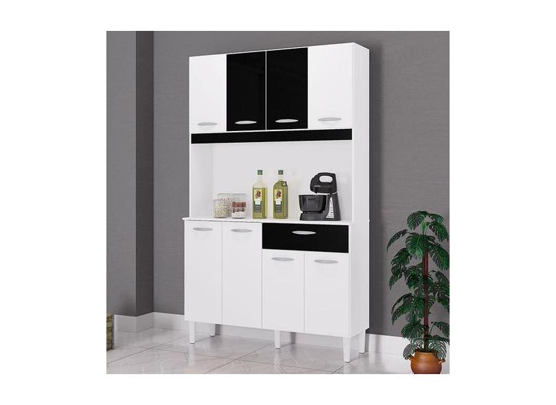 Cozinha Ambiente Kit Cassia 8 Portas Branco Preto - Poquema - Poquema