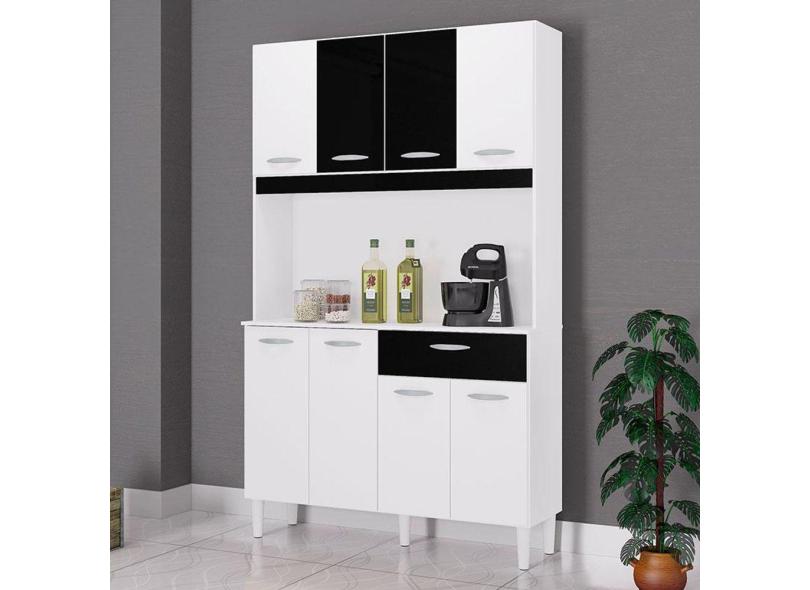 Cozinha Ambiente Kit Cassia 8 Portas Branco Preto - Poquema
