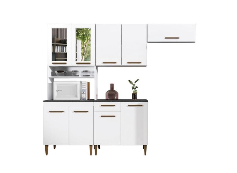 Cozinha Atenas Com Vidro Reflecta 09 Portas 1 Gaveta Kaiki Moveis Branco
