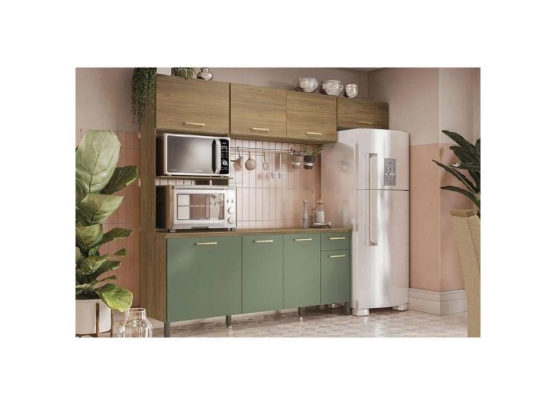 Cozinha Cb812 4 Peças (2 Armários + 1 Paneleiro + 1 Balcão) Nogueira-verde Oliva