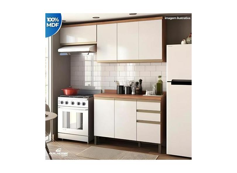 Cozinha Compacta 03 Peças Balcão Mais Áerio Nicho Geladeira Chardonnay