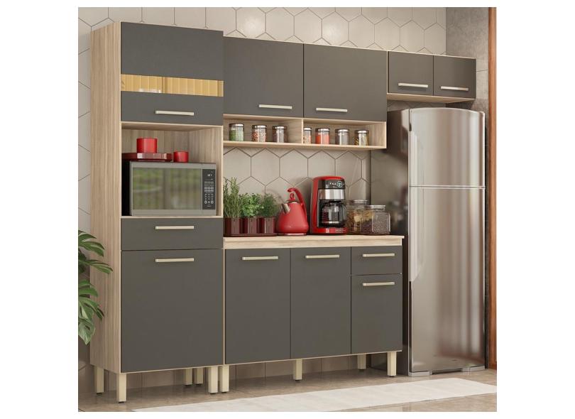 Cozinha Compacta 09 Portas 02 Gavetas Dama com Balcão Dama Avena Grafito Demóbile