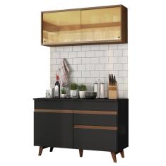 Cozinha Compacta 1 Gaveta 4 Portas com vidro Reims 120001 Madesa
