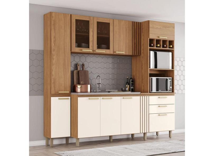 Cozinha Compacta 10 Portas 2 Gavetas para 2 Fornos Bc01 Marrom e Off White