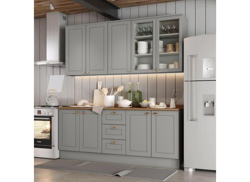 Cozinha Compacta 100% Mdf 4 Peças com Portas de Vidro Internacional Cinza/Marrom