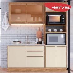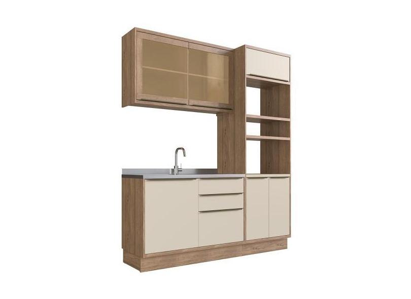 Cozinha Compacta 100% MDF Modular Édez Uno, 3 Peças, Off White e Louro