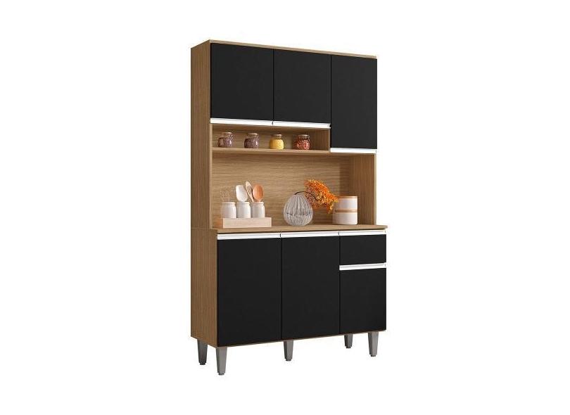 Cozinha Compacta 105cm Com 6 Portas 1 Gaveta Márcia Preto/Amêndoa - Aj