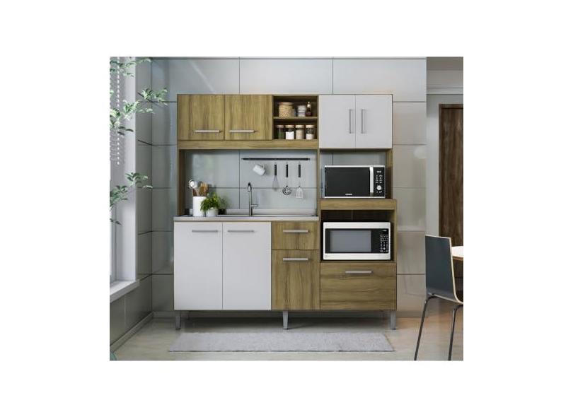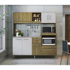 Cozinha Compacta 186cm com 8 Portas, 1 Gaveta e 3 Nichos 2203 Carvalho Dakar/Branco