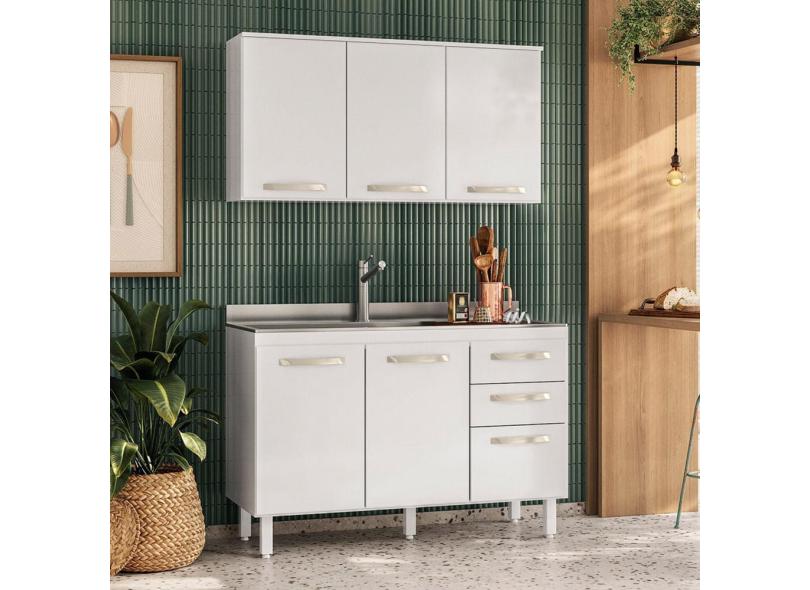 O menor preço encontrado no Brasil para Cozinha Compacta 2 Peças 1,20 m 5 Portas 3 Gavetas Branco Bit Nicioli atualmente é R$ 2.774,29.