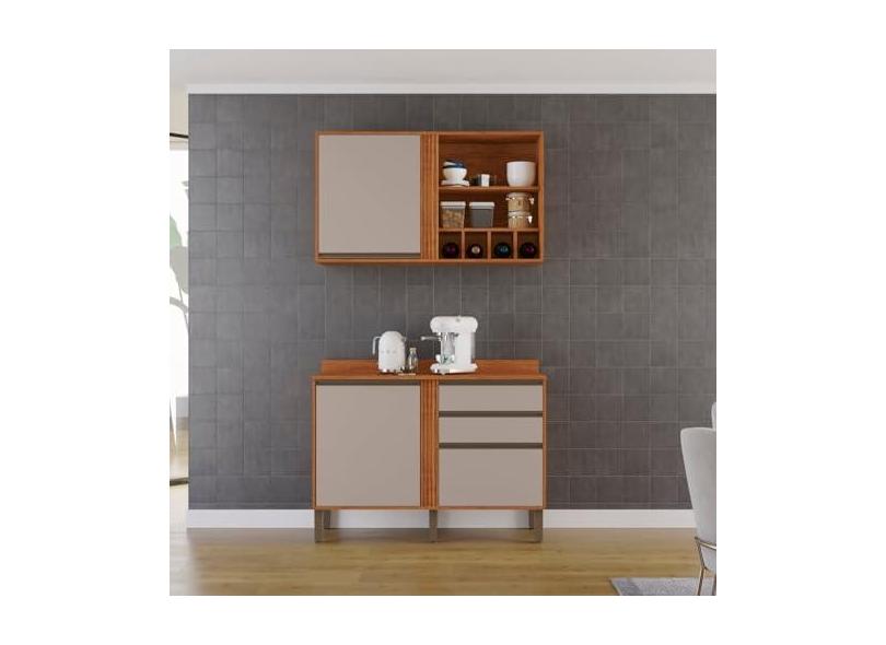 Cozinha Compacta 2 Peças 3 Portas 2 Gavetas Pérola Cinamomo/off White
