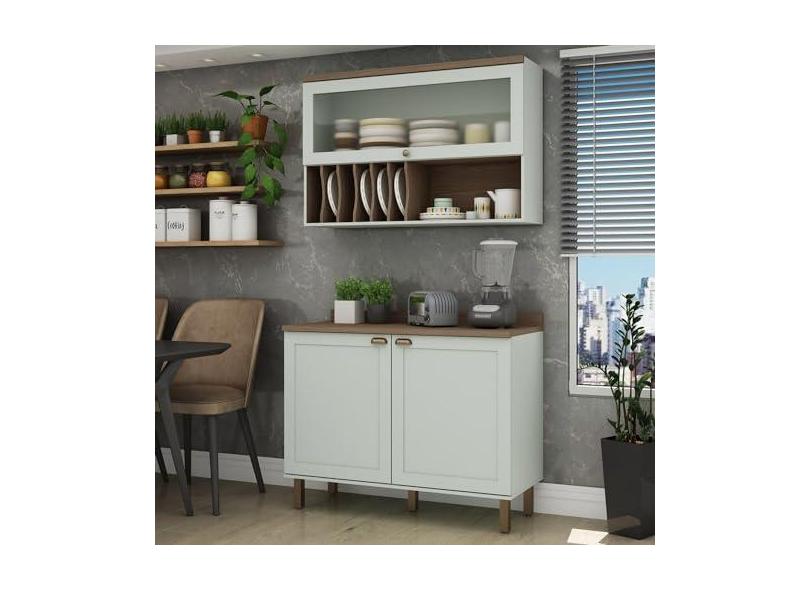 O menor preço encontrado no Brasil para Cozinha Compacta 2 Peças 3 Portas Balcão 120cm Tampo Mdf Iluminata Verde Mint/Ébano atualmente é R$ 959,98.