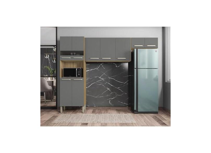 O menor preço encontrado no Brasil para Cozinha Compacta 2 Peças Torre Quente 4 Portas Balcão Suspenso 4 Portas Nala Kits Paraná Freijó/gris atualmente é R$ 519,98.