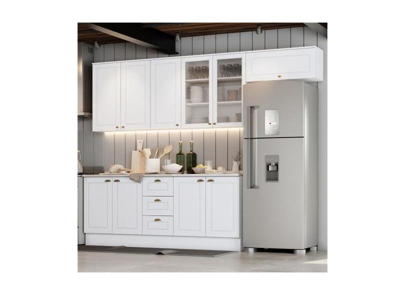 Cozinha Compacta 280cm Americana com Vidro 5 peças 10 Portas 3 Gavetas