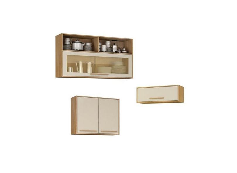 Cozinha Compacta 3 Armários Aéreos Salvador Cinamomo/Off White - Valde
