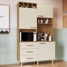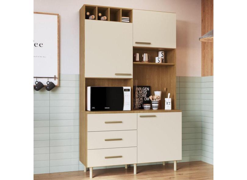Cozinha Compacta 3 Portas 3 Gavetas 1 Nicho para Forno Alice Móveis Cadorin Freijó/Areia