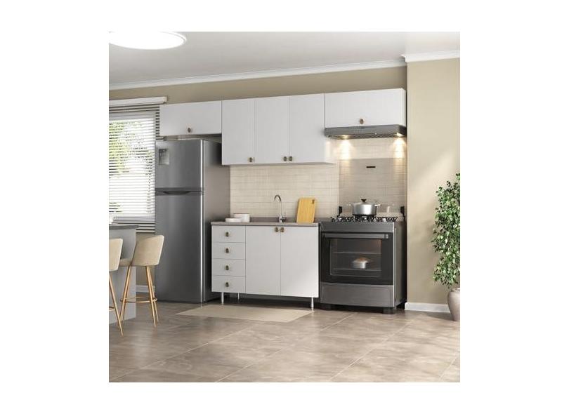 Cozinha Compacta 4 Peças 100% Mdf Bp 1 Balcão 3 Aereos Maranello Branco