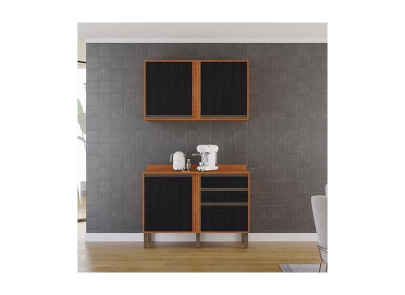 Cozinha Compacta 4 Peças 4 Portas 2 Gavetas Pérola Cinamomo/preto