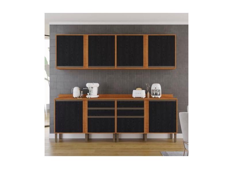 Cozinha Compacta 4 Peças 8 Portas 4 Gavetas Pérola Cinamomo/preto
