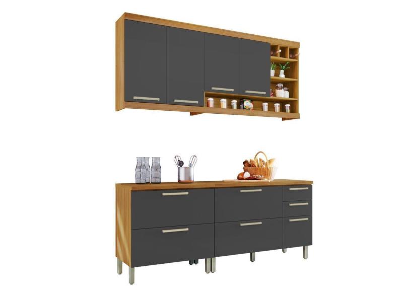 Cozinha Compacta 4 Peças Burguesa Nesher Móveis Amadeirado Freijó-grafite