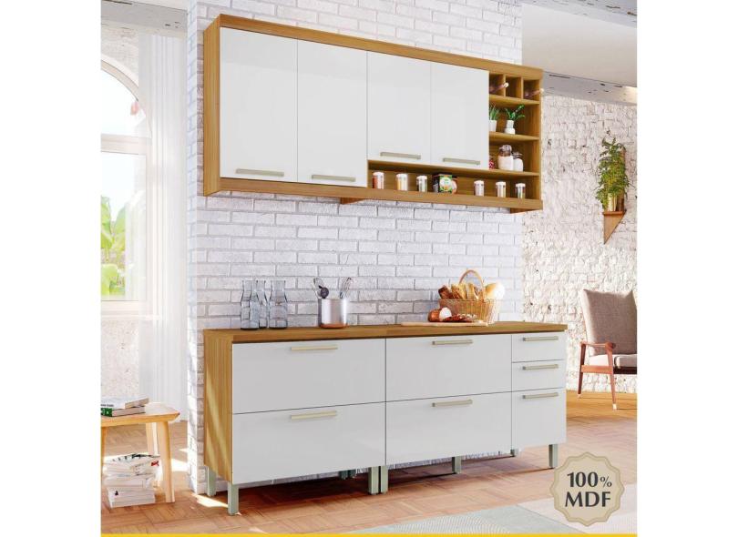 Cozinha Compacta 4 Peças Burguesa Premium Amadeirado Freijó/Branco