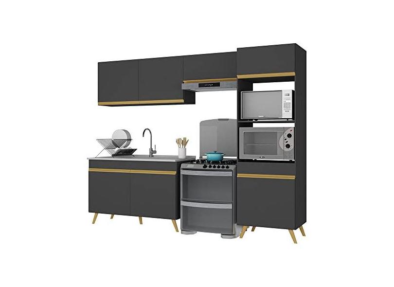 Cozinha Compacta 4 peças com Armário e Balcão Mp3749 Veneza Gb Multimóveis Preta