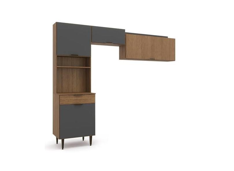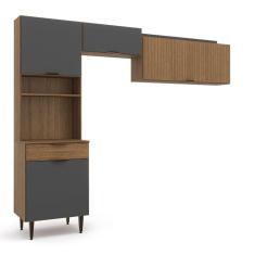 Cozinha Compacta 4 Portas 1 Gaveta Vittoria Ipê Wood/Grafite